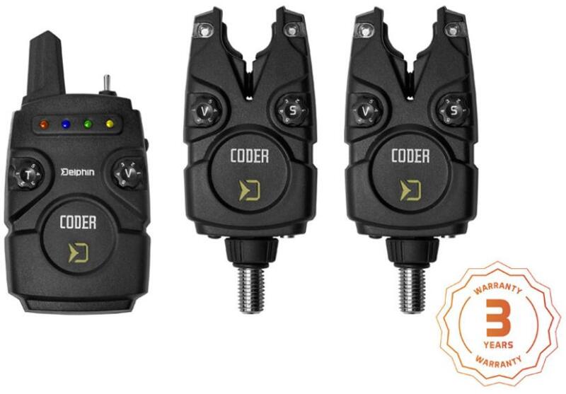 A Delphin CODER olyan elektromos kapásjelzõ szett, amelyben a teljesítmény és a kedvezõ ár ideális aránya ötvözõdik. Legfõbb elõnyei a megbízhatóság és a 100% -os funkcionalitás, amiben még drágább szettekkel is összehasonlítható. A jelzõk és a vevõegység közötti jel ideális körülmények között akár 140 m távolságra is továbbítható. Az egész készlet kemény műanyag tokban kerül árusításra, amely gondoskodik a szállítás közbeni biztonságról.